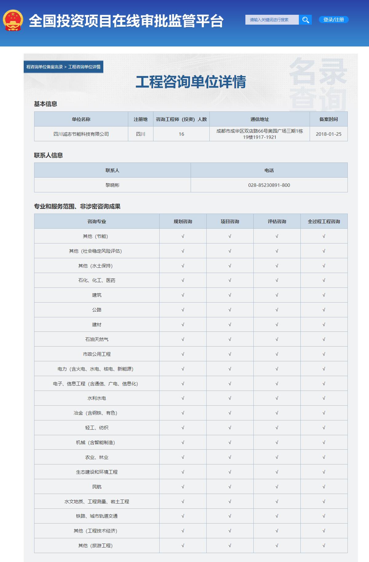 四川誠志節(jié)能科技有限公司(以下簡稱我公司)成立于2011年2月,是由多年從事技術咨詢服務行業(yè)的自然人發(fā)起,依托其近20年的咨詢行業(yè)經(jīng)驗及其市場和人力資源優(yōu)勢,組建成立的具備獨立法人資格的技術咨詢服務公司。我公司為四川省省級能源審計機構資格(2012年第一批,2016年四川省經(jīng)信委推薦能源審計機構【川經(jīng)信辦環(huán)資〔2016〕10號】),并取得含有節(jié)能專業(yè)的工程咨詢單位咨信資質,為四川省工程咨詢協(xié)會會員單位,中國水土保持學會會員單位,為高新技術企業(yè)。我公司通過了質量管理體系(ISO9001)、環(huán)境管...